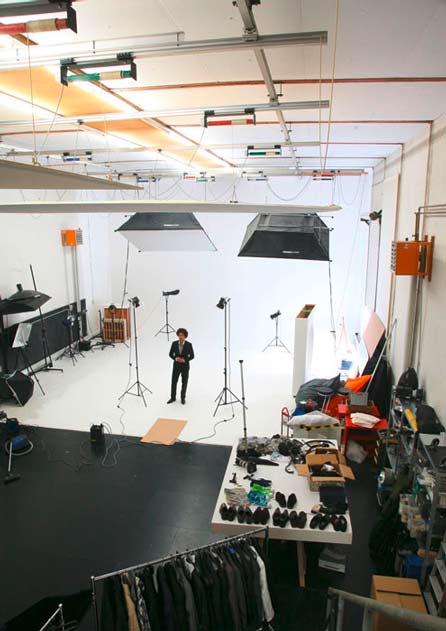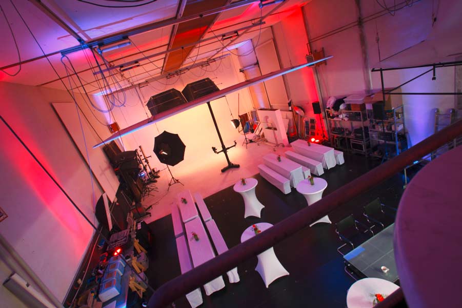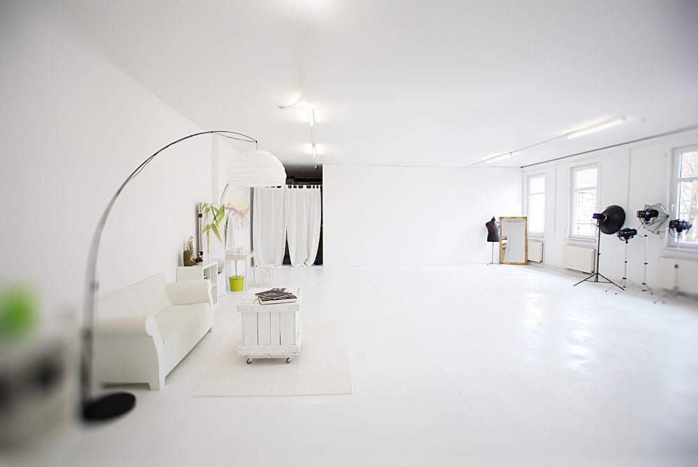 mit 200 QM | Die Hohlkehle mit 10 Metern Breite ermöglichen es, auch große Objekte in Szene zu setzen. Schwerpunkte: Werbefotografie, Modefotografie, Food und People. Das Studio "White Loft" mit 80 QM ist ideal für Portraitfotos und ähnlich gelagerten Aufnahmen.